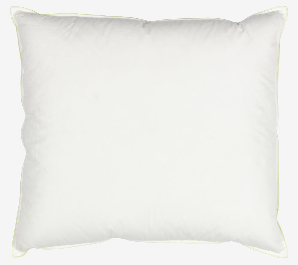 Oreiller 60x63/70 cm en duvet de canard avec 3 compartiments. Garnissage : cloisons externes : 80% duvet de canard européen blanc/20% plumes de canard, cloisons internes : 100% plumes de canard européen blanc, 750g. L'enveloppe est traitée avec le biocide GREENFIRST®. Enveloppe en 100% coton sergé étroitement tissé. Pouvoir gonflant : 675/350. Lavable à 60°C.