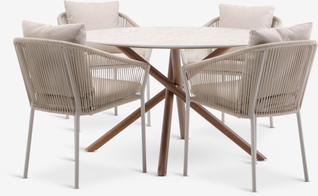 SANDVIG + BRAVASANDVIG Ø120 table + 4 BRAVA chaises beige