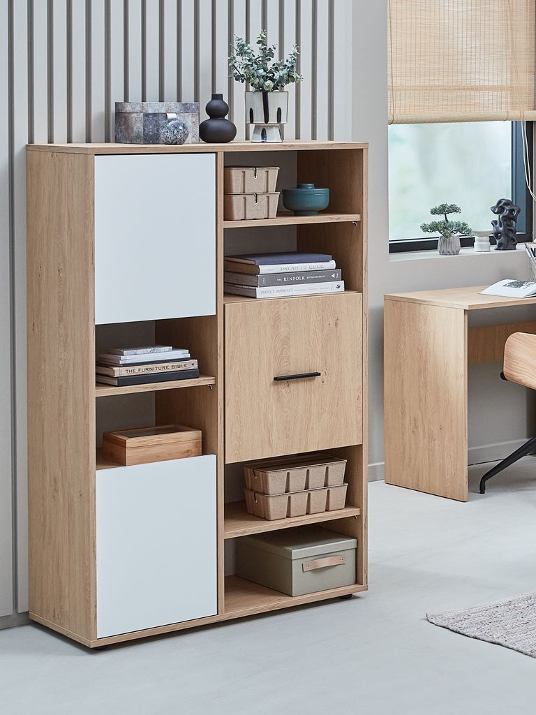 BILLUNDBibliothèque BILLUND 3 portes 3 étagères coloris chêne/blanc