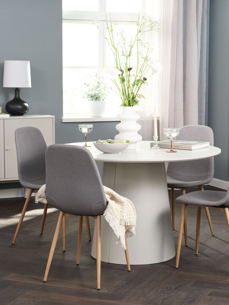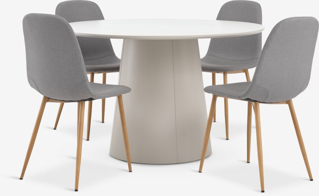 KLIPLEV + JONSTRUPKLIPLEV Ø120 table colo. travertin + 4 JONSTRUP chaises gris
